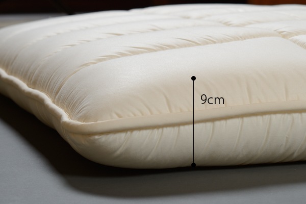 | 素材 | ・側生地:綿100% ・中わた:ウール100%……約3.0kg ・中芯:超軽量・高硬度プロファイルウレタン ・総重量:約4.9kg |