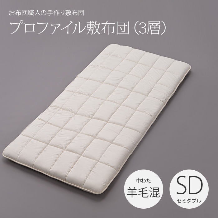 | 商品詳細 | 超軽量 プロファイル敷き布団(3層構造)[中わた:羊毛混(ウール50%/吸汗ポリエステル50%)] |