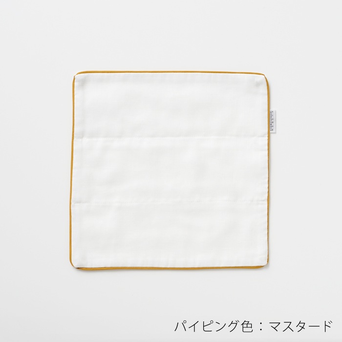 商品詳細 4日間釜熟成「京和晒綿紗」(きょうわざらしめんしゃ)ガーゼを使用したガーゼタオルです。 お洗濯するほどにやわらかく、ふんわりと風合いがよくなります。 ホルムアルデヒド0なので、敏感肌の方やアトピーの方も安心してお使いいただけます。 サイズ 25×25cm 仕様 ・素材;綿100%(四日間釜熟成 京和晒綿紗 98本ガーゼ使用) ・パイピング:綿100% … 色:マスタード,グレー 生産 日本製 お手入れ方法 ・お洗濯の際には洗濯ネットをご利用頂き、タンブラー乾燥はお避けください。 ・洗剤は無蛍光洗剤をご使用ください。 ・お洗濯後、四方のシワをのばし、形を整えて干してください。 ・お洗濯頂くほど、一層風合いがよくなり、ナチュラルな肌ざわりをお楽しみいただけます。 オプション