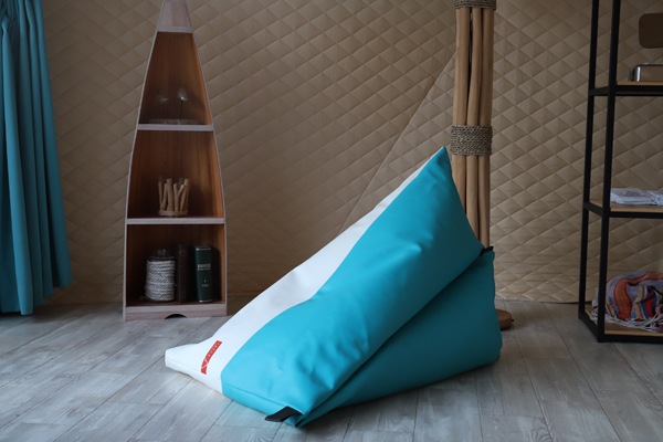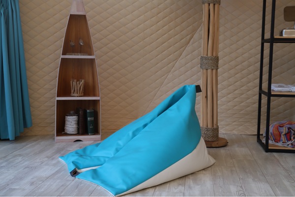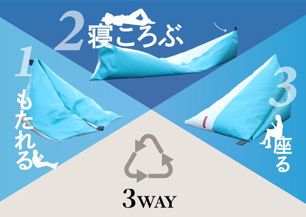 “もたれる”、“寝ころぶ”、“座る” —— シーンに合わせて自在に変化する、3Way仕様のビーズクッション。