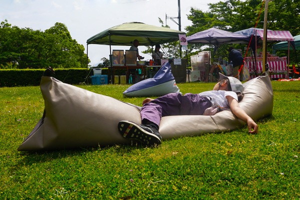そんな屋外イベントにぴったりなのが「tetra LUXE-OD-」。持ち運びも簡単、水や汚れにも強いから、飲み物の扱いや夜露を気にせず快適に過ごせます。座る、もたれる、寝ころぶ ── その場の気分に合わせて使用方法は自由自在です。