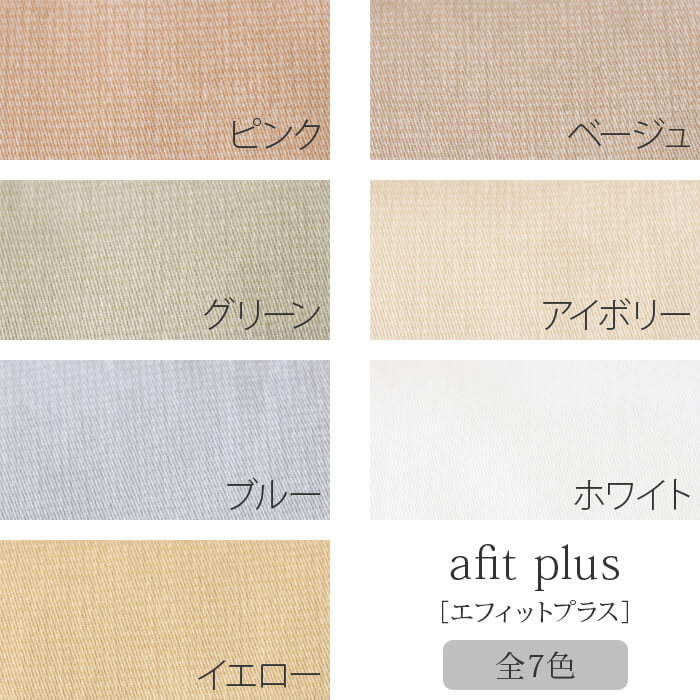 | 商品詳細 | afit plus[エフィットプラス]フィットシーツ 無地風ナチュラルカラー7色展開。ソフト加工したサテン生地使用。 とても柔らかな肌触りです。 細やかな地模様とこげ茶のテープがアクセントです。 |