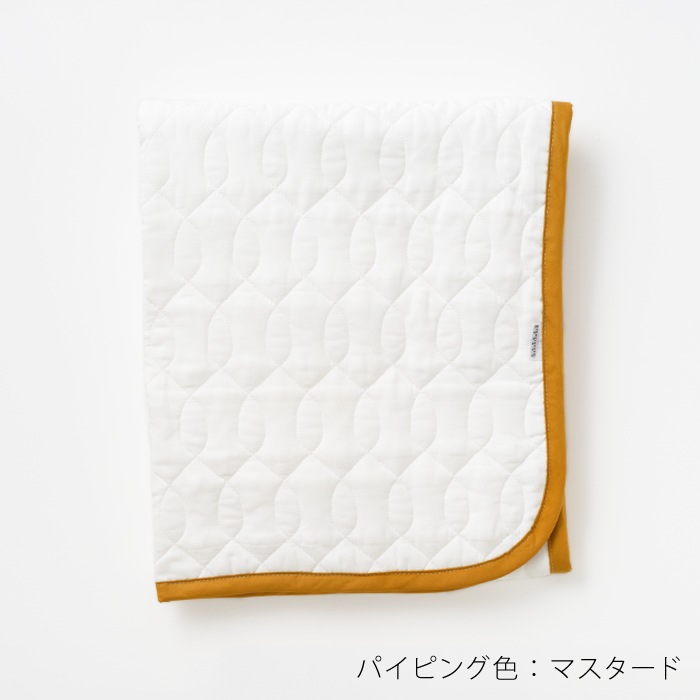 | 仕様 | 素材:綿100% 四日間釜熟成 京和晒綿紗 仕様:98本ガーゼ使用 脱脂綿入り4層 コットンバイアス マスタード,グレー 表:ガーゼ2枚重ね 裏:ガーゼ1枚重ね 4隅ゴム付き |