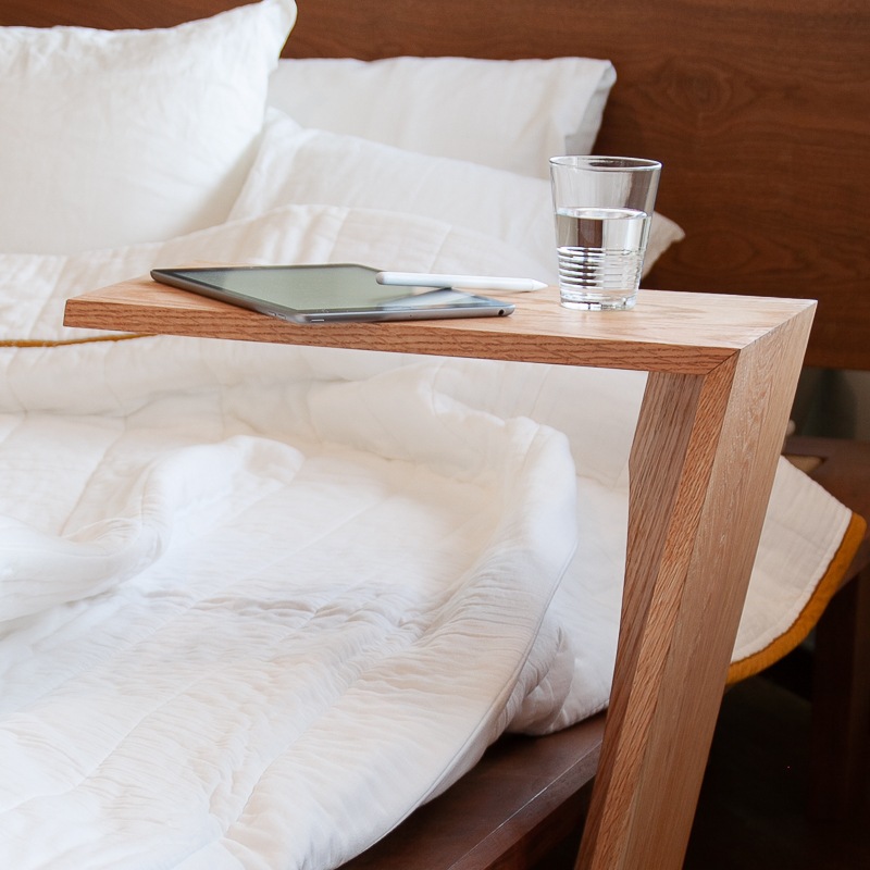Yugamiラックの幕板はデスクやベッド下の隙間に深く差し込みことができように緩やかなに曲線を描いています。ベッドで朝食を取ったり、ソファ横にコーヒーなどのドリンクを置くテーブルとしてもお使いいただけます。