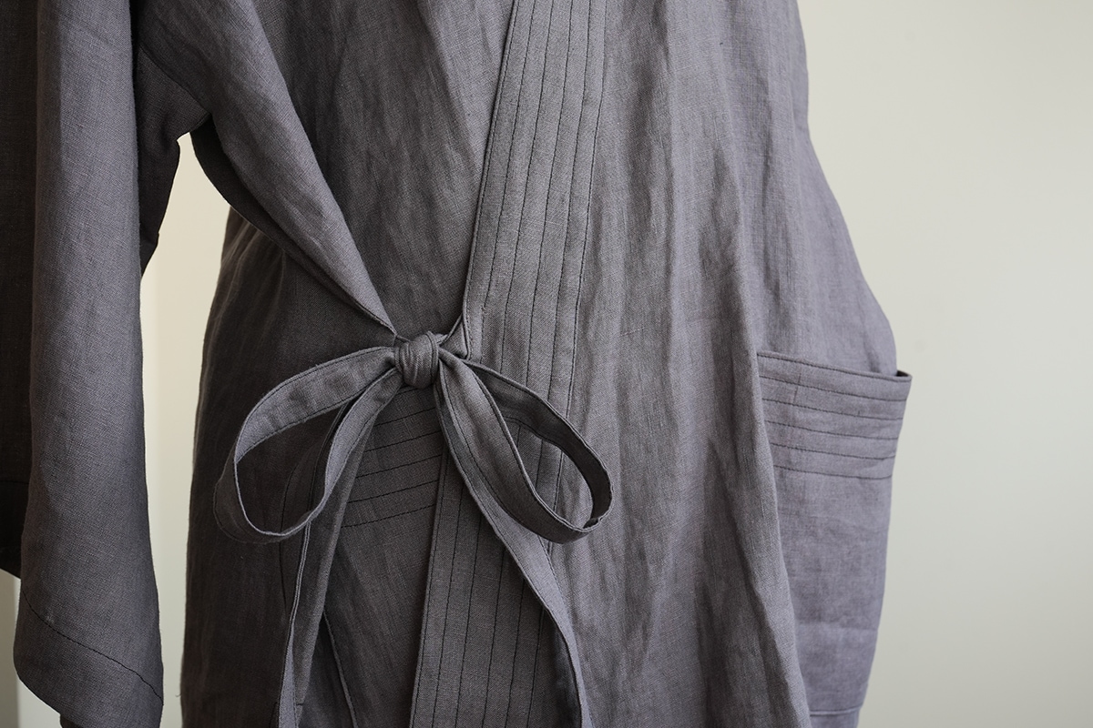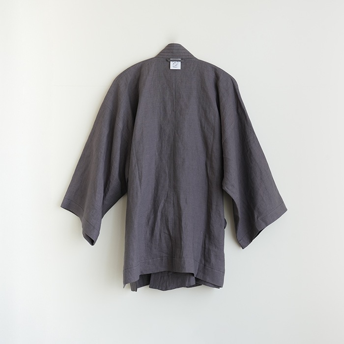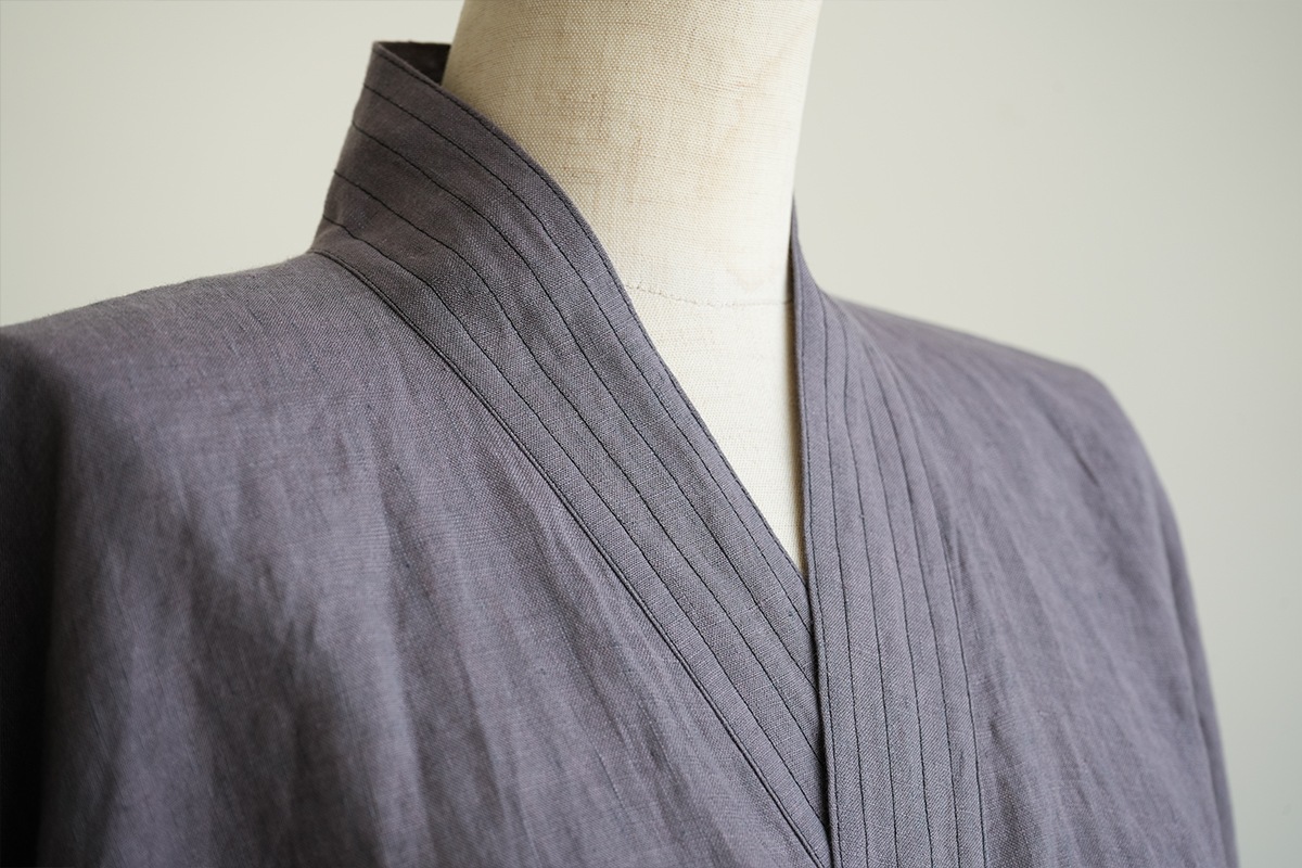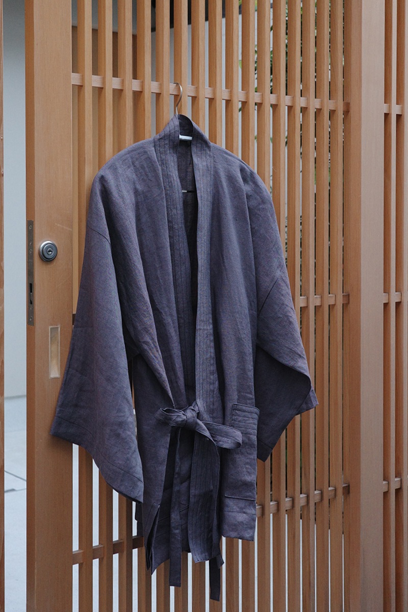 作務衣を元にデザインし、深みのあるダークパープルで仕上げたリネンショートサムエ。