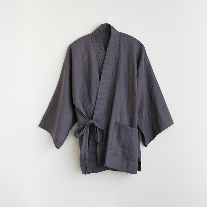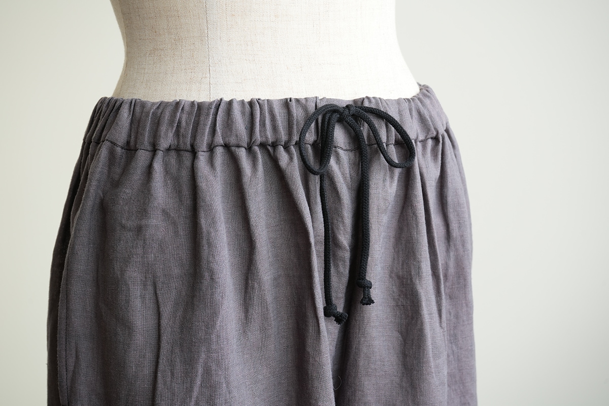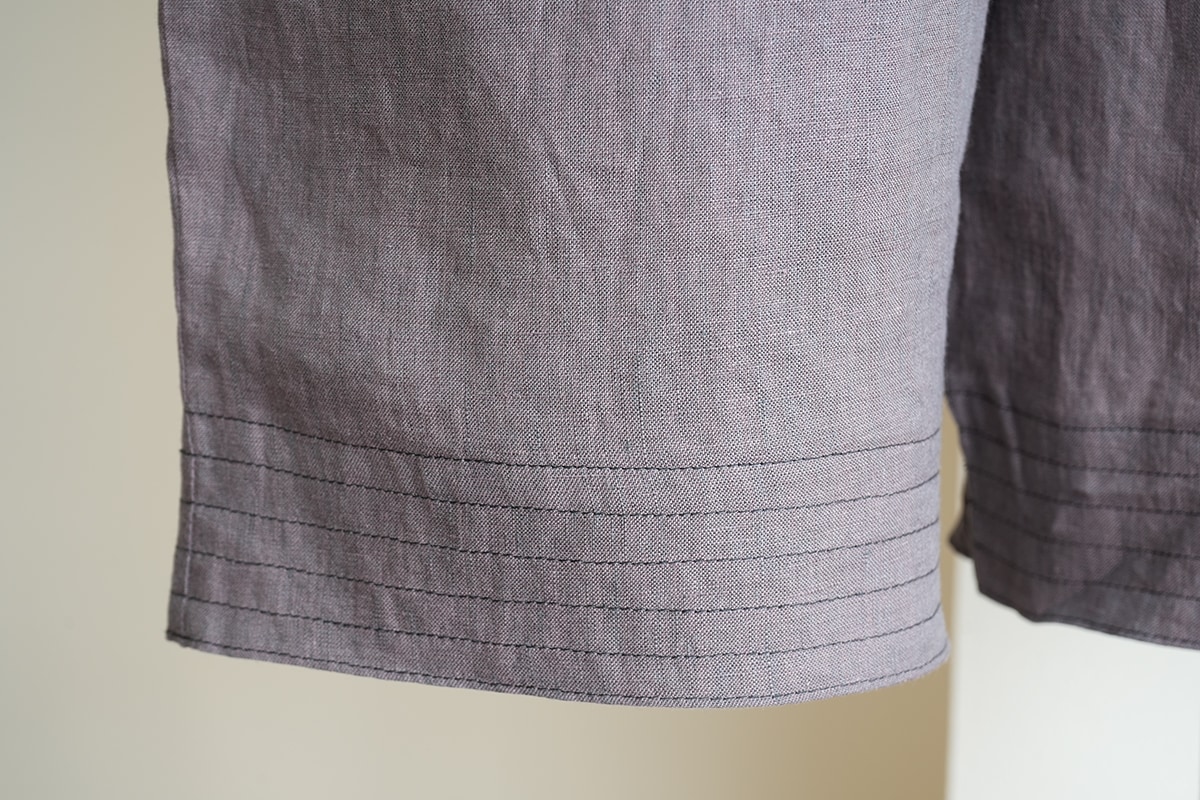 裾の5本ステッチは、裾端が地面に擦れても破れにくい仕様となっている他、 少しだけ生地のオチ感を出しています。 肌にやさしいリネンに包まれて、快適に過ごしていただけます・